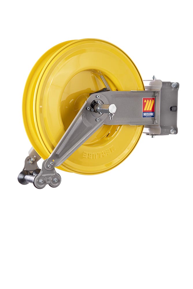 Deze zwenkbare haspel voor vet bestaat uit gegalvaniseerd staal met afdichtingen in polyurethaan en is geschikt voor wand- en plafondmontage.
