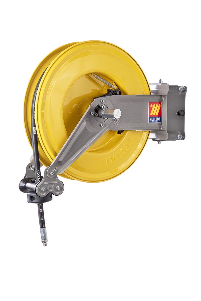 Deze zwenkbare haspel voor vet bestaat uit gegalvaniseerd staal met afdichtingen in polyurethaan en is geschikt voor wand- en plafondmontage.