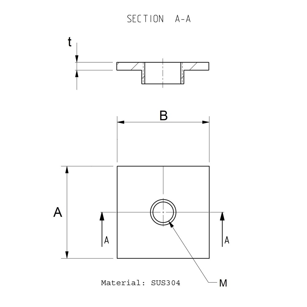 Vierkante lasplaat RVS schroefdraad 50x50x4mm M20