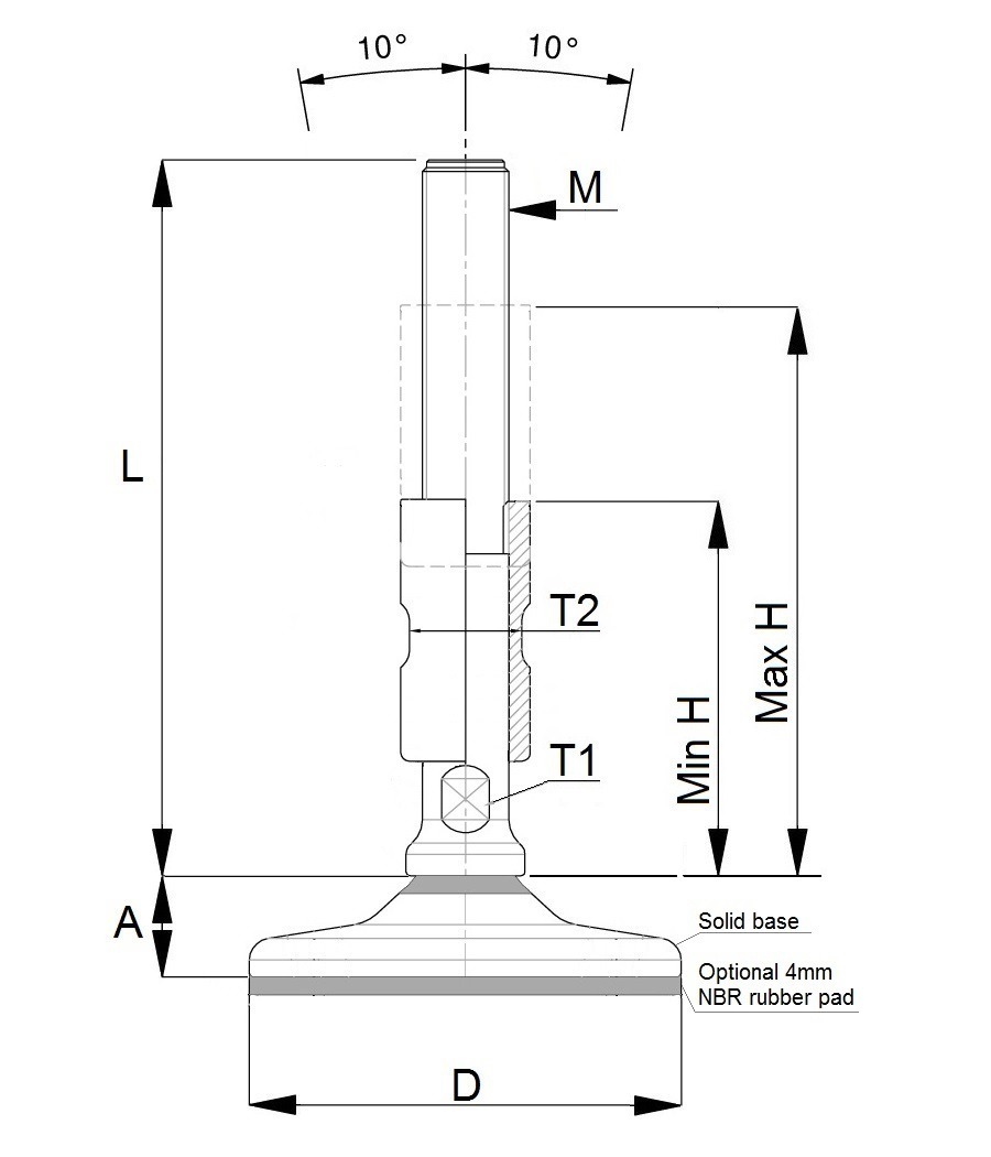 Deze hygiënische RVS stelvoet met beschermde spindel en massieve voet is de ideale keuze voor stabiliteit en precisie. De voet kan worden voorzien van een antisliplaag die zorgt voor trillingsdemping en is bestand tegen chemische middelen, schoonmaakproducten, oliën en vetten. Gecertificeerd FDA voor toepassing in de voedingsmiddelenindustrie.
