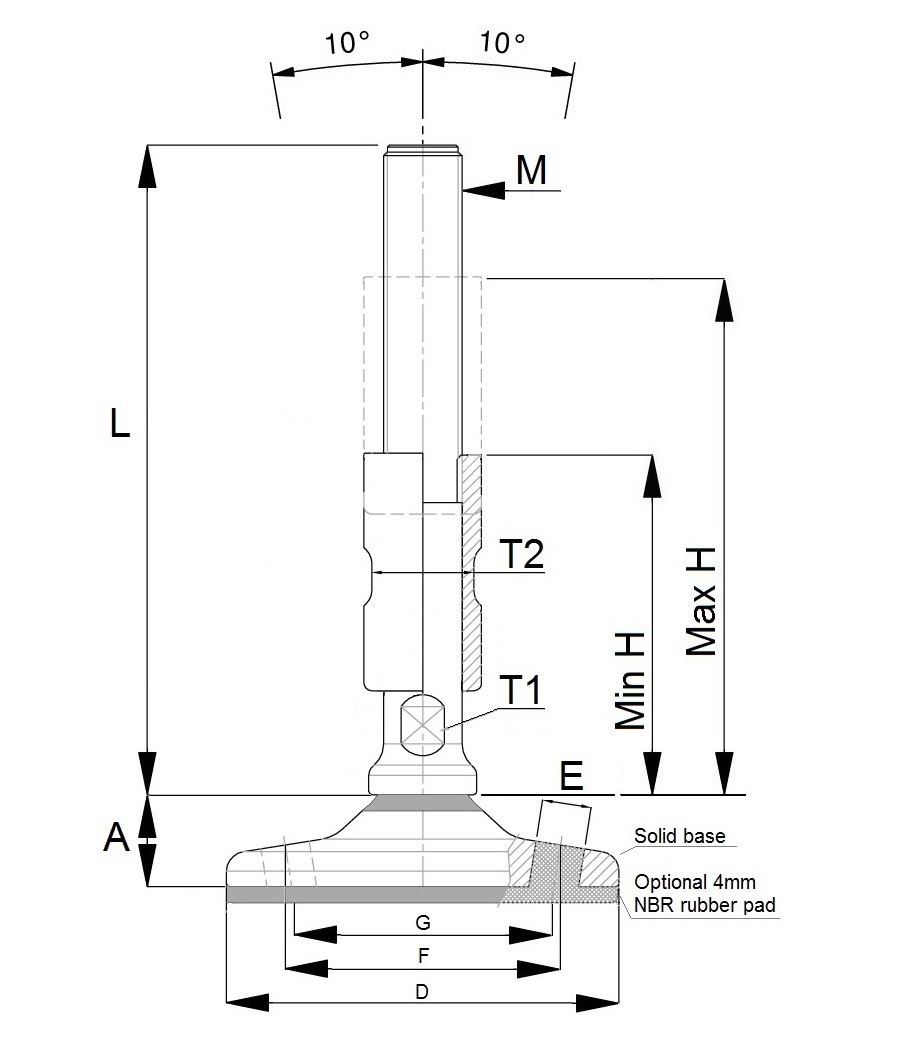 Deze hygiënische RVS stelvoet met beschermde spindel en massieve voet is de ideale keuze voor stabiliteit en precisie. De voet kan worden voorzien van een antisliplaag die zorgt voor trillingsdemping en is bestand tegen chemische middelen, schoonmaakproducten, oliën en vetten. Gecertificeerd FDA voor toepassing in de voedingsmiddelenindustrie.